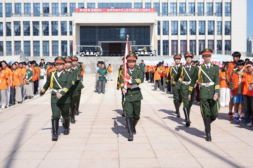 “喜迎国庆 礼赞祖国”——我校隆重举行烈士纪念日暨庆祝新中国成立七十五周年升旗仪式时间:2024-09-30 今天,2024年9月30日,是第十一个烈士纪念日。江西赣东高级技工学校全体师生齐聚太阳广场,共同举行一场意义非凡的升国旗仪式。 上午9点50分,学校国旗护卫队迈着铿锵有力的步伐,护送着鲜艳的五星红旗走向升旗台。